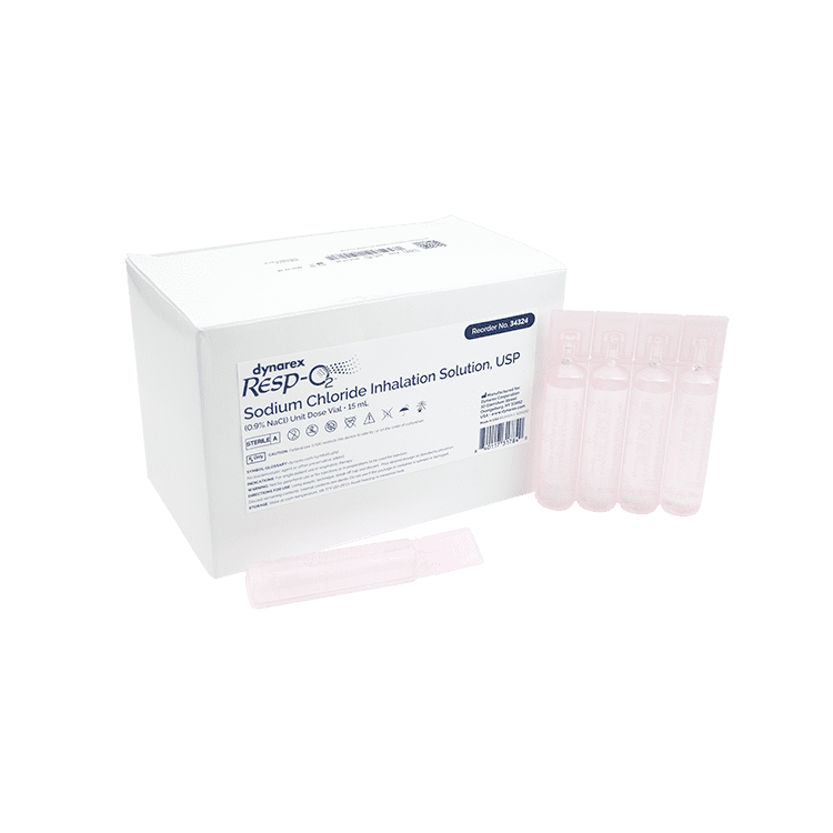 Dynarex Resp-O2 Sterile Saline Unit Dose Vials are disposable, single-use respiratory therapy vials filled with saline solutions designed for patient inhalation. The saline solutions are sterilized to ensure patient safety and to help avoid cross-contamination.