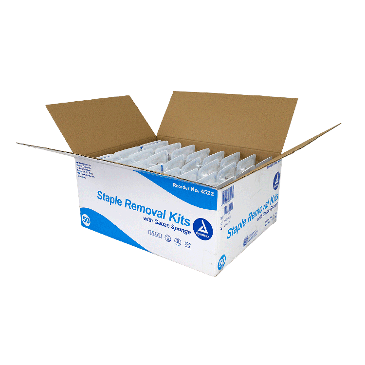 - 4522: Includes stainless-steel skin staple remover and 3” × 3” gauze sponge