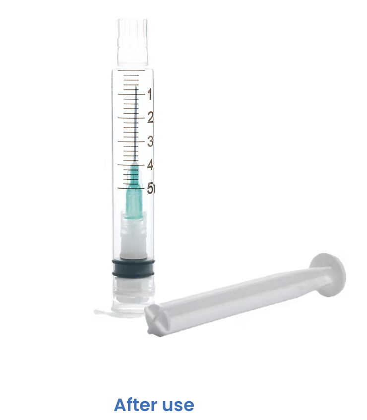 Pull back the plunger after injection, the locking ring secures the needle in the barrel of the syringe protecting from needle stick injuiry.